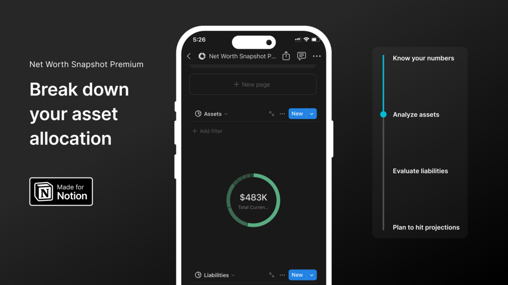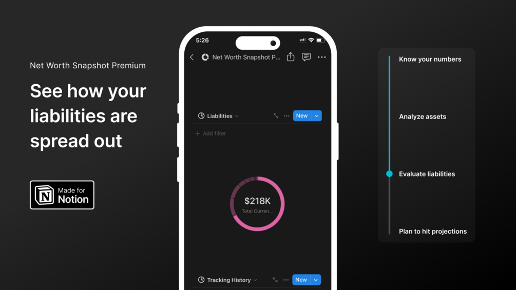 - Historical Tracking to monitor how your net worth, assets, and liabilities have evolved over time